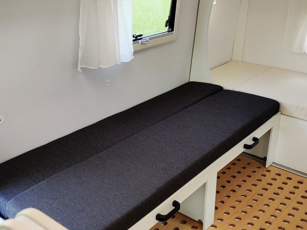 Scocca monolitica, leggera ma resistentissima ( in vetroresina isolata con termanto),associa un isolamento termico, una resistenza meccanica, e un 'intaccabilità dagli agenti atmosferici, davvero unica.