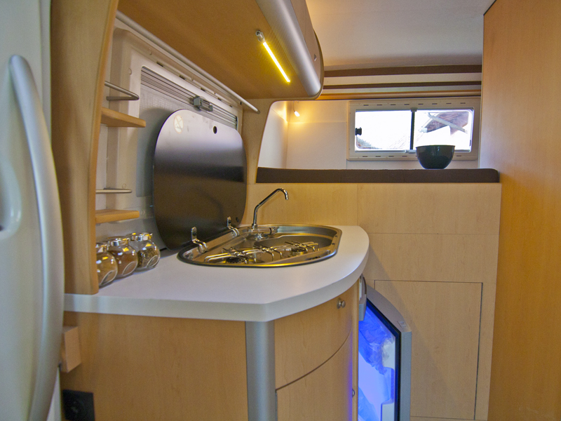 Scocca monolitica, leggera ma resistentissima ( in vetroresina isolata con termanto),associa un isolamento termico, una resistenza meccanica, e un 'intaccabilità dagli agenti atmosferici, davvero unica.