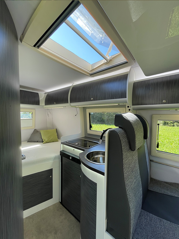 Scocca monolitica, leggera ma resistentissima ( in vetroresina isolata con termanto),associa un isolamento termico, una resistenza meccanica, e un 'intaccabilità dagli agenti atmosferici, davvero unica.
