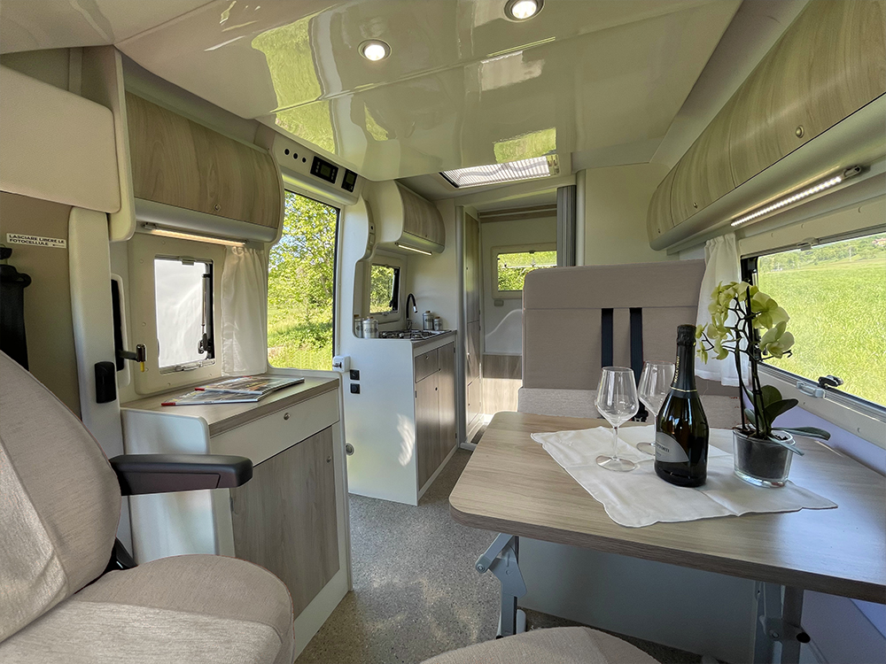 Scocca monolitica, leggera ma resistentissima ( in vetroresina isolata con termanto),associa un isolamento termico, una resistenza meccanica, e un 'intaccabilità dagli agenti atmosferici, davvero unica.